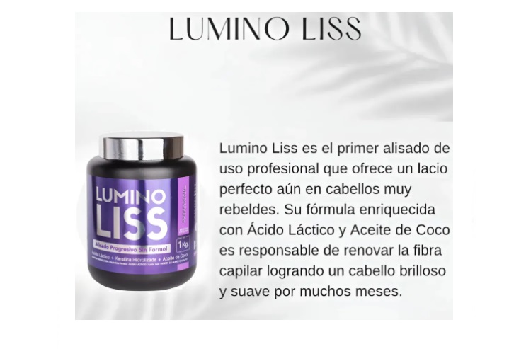 La presentación en crema permite una aplicación fácil y uniforme, asegurando que cada hebra reciba el tratamiento necesario. Este producto es apto para todo tipo de cabello, brindando resultados visibles desde la primera aplicación. Con Lumino Liss, disfrutarás de un cabello liso y sedoso, sin los efectos nocivos de los tratamientos tradicionales.